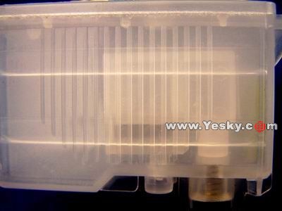 無海綿墨盒側(cè)面圖,里面有一個(gè)墨水壓力平衡倉,可以起到平衡墨水的作用,使得打印頭承受的壓力更為均衡。