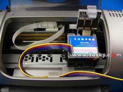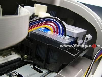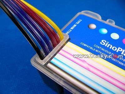 這是目前無海綿連續(xù)供墨系統(tǒng)最理想的走線方式,設(shè)計(jì)為一體,接頭在墨盒表面蓋子的下面,美觀大方