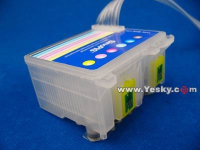 無海綿墨盒配以硅膠管線和各色外墨盒蓋,組成連續(xù)供墨系統(tǒng)的內(nèi)部部分,當(dāng)然也少不了永久長效芯片。